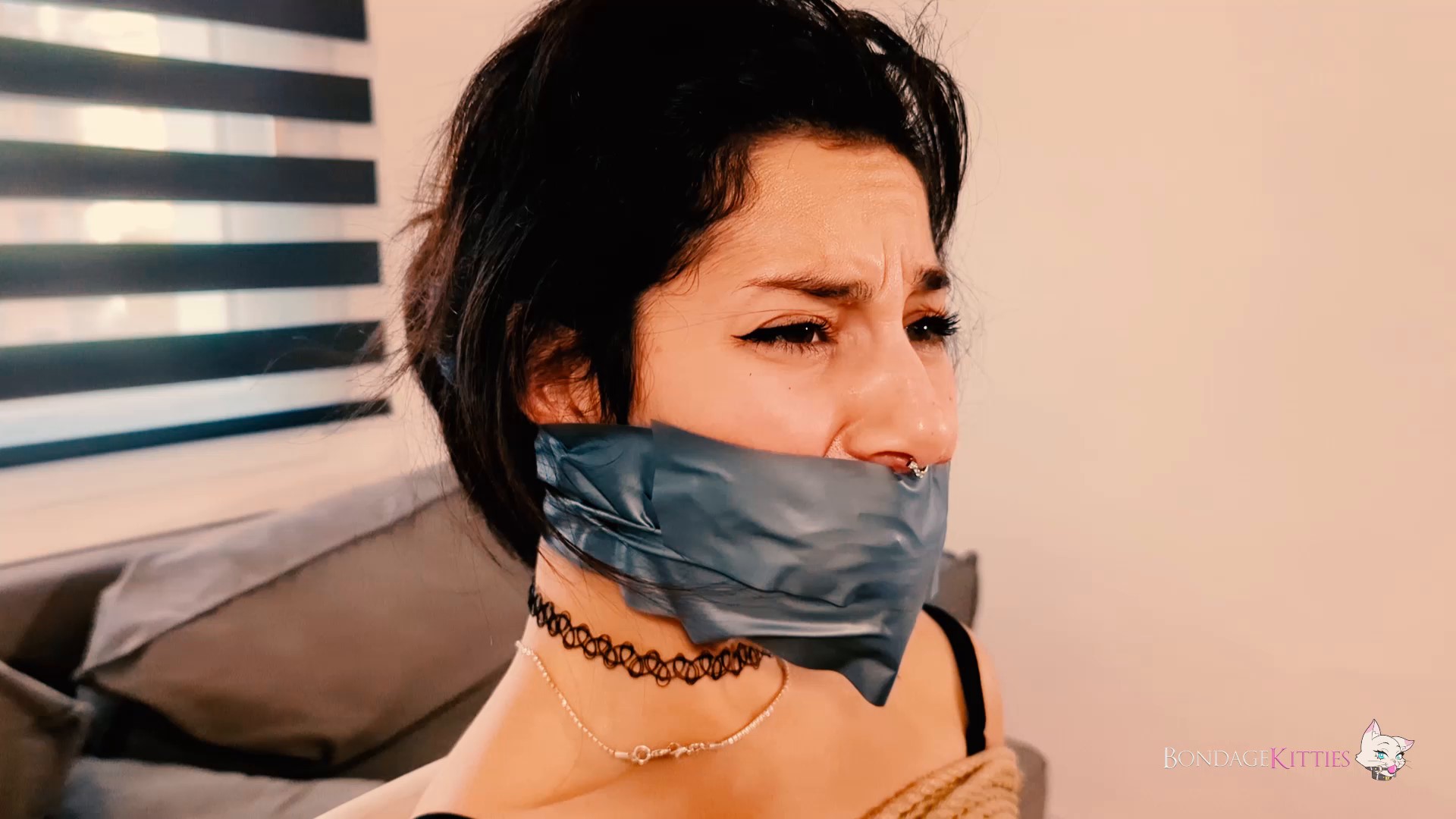 Mayla is a famous influencer who is dedicated to making practical jokes to people, thanks to this, she has achieved a lot of fame and has to be always at a high level. Now she wants to prank her roommate Tenjou, with whom they already agreed that they would never prank each other for their channel, but Mayla breaks the pact. She catches Tenjou by surprise, tapes her hands behind her back, pulls off her socks and stuffs them in her mouth, taping them into a tight wrapgag so that she can’t complain. She continues to tie her roommate’s chest and legs together, using so much tape that he almost mummifies her, she also ties her big toes together.