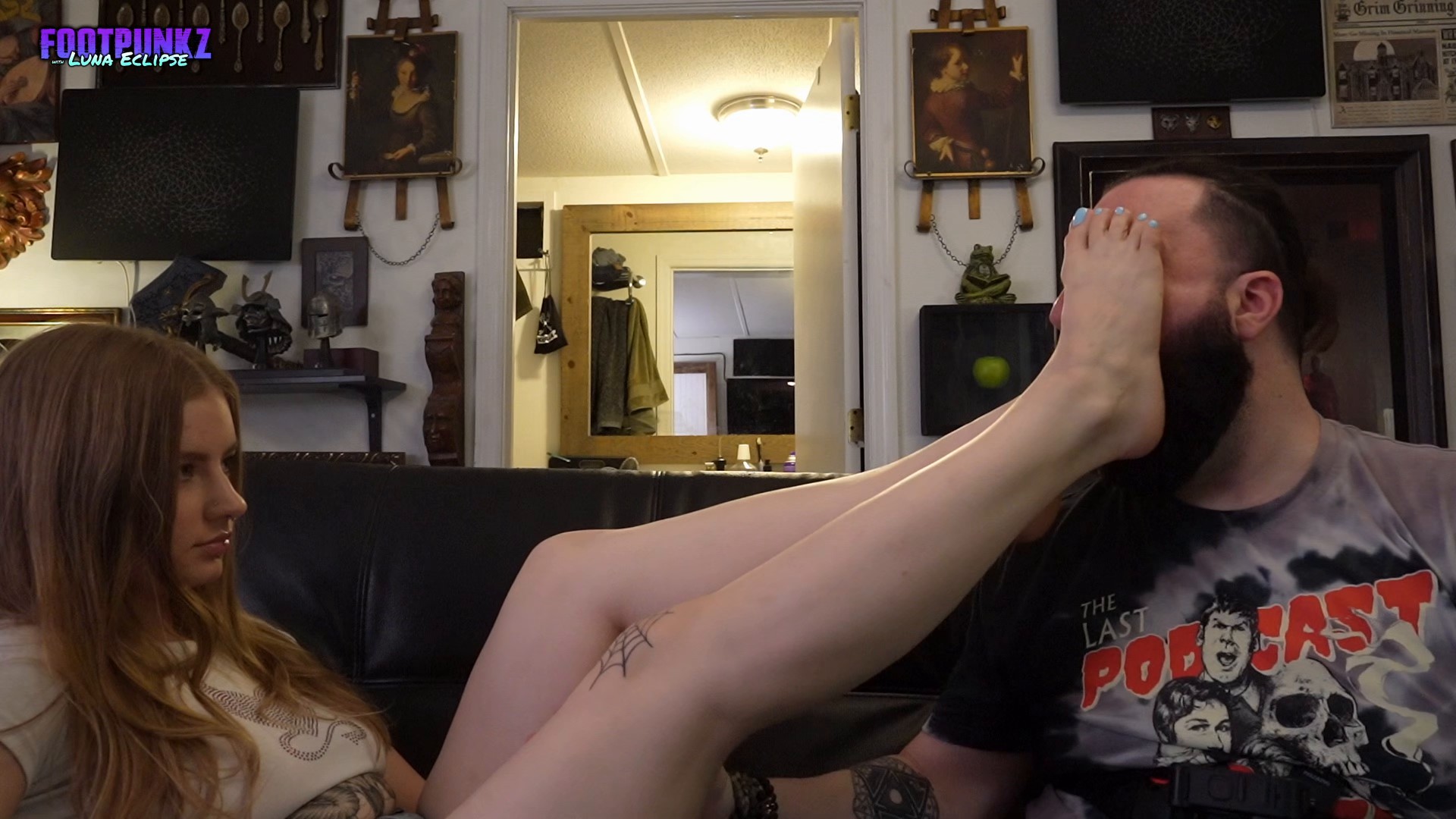 Luna had just woken up, and was laying down on the couch looking through her phone. Her sky blue painted toes were driving me crazy. I kept walking by to get more glimpses at them, and I think she started to notice. Eventually, she propped her leg up on her knee so when I walked by, it was closer to my face. When I walked by she lunged out, knocking me to the couch in front of her. She said that if I was going to keep staring at her feet, she was going to make me gag on them.
