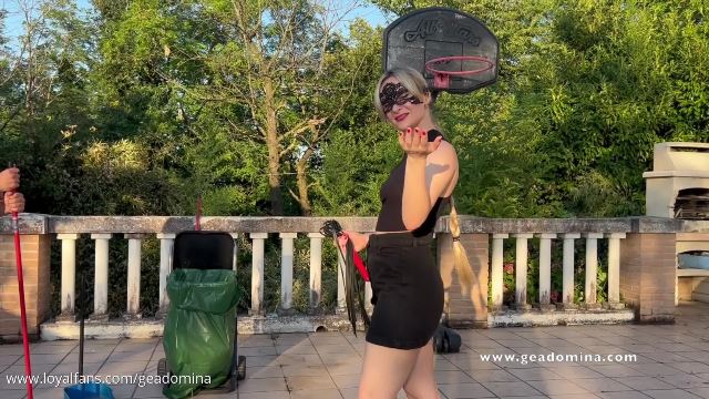 You have been recruited as a slave to Gaea Domina in her holiday villa. You wait for her on your knees in front of the entrance and, when she arrives, she shows you around. Gea explains the tasks assigned to you, she shows you what happens with the other workers and what can happen if they make a mistake. Get busy, everything must be ready by this evening.