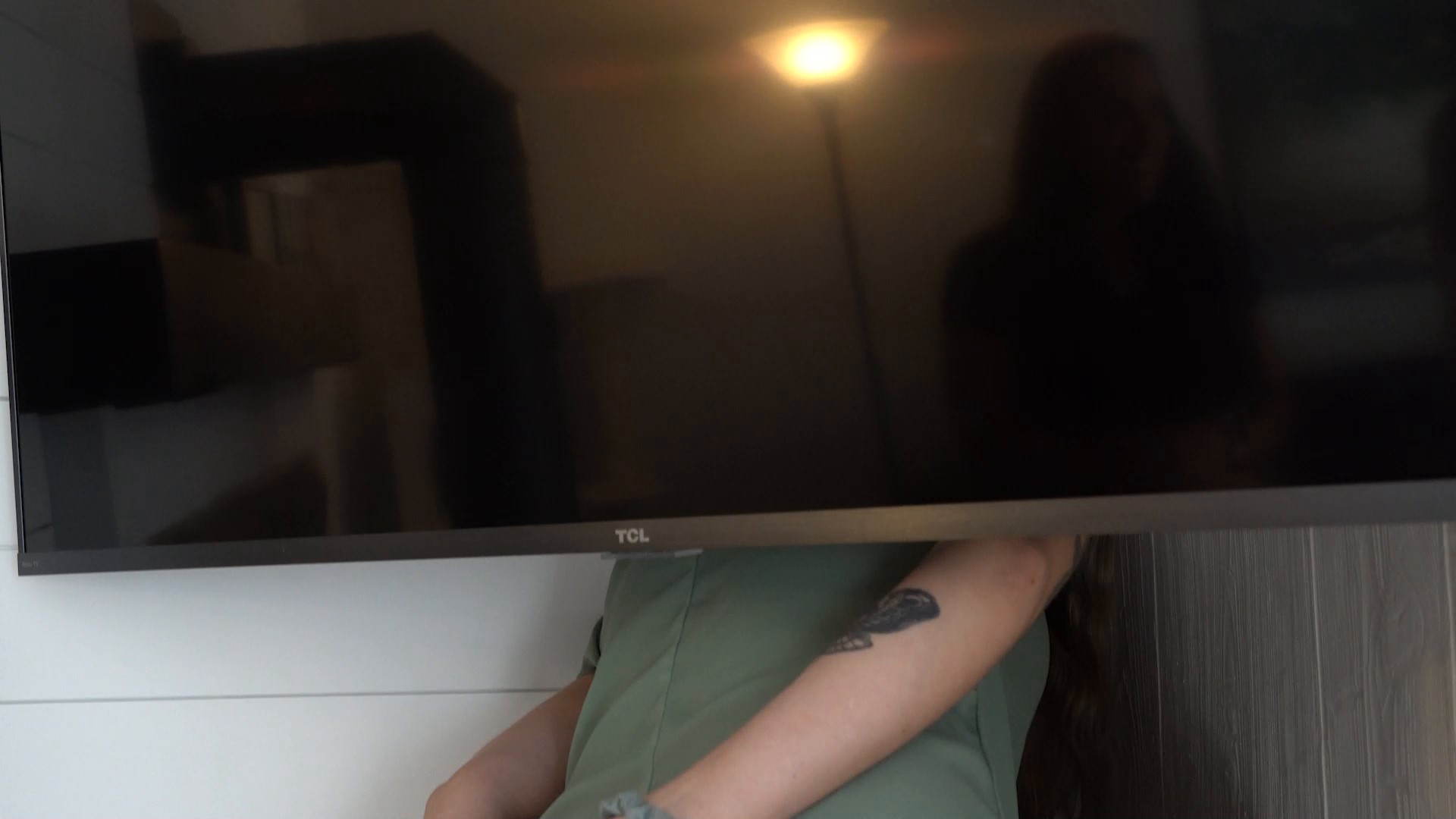 Zoe and Abby are trying to get their TV working and when they call the Geek Squad (Sadie) the repair girl gets stuck behind the TV! Well of course the girls can’t just let her be stuck there – so they pull her pants down, leaving her desperately trying to cover up as Daphne and Frank enter the room!