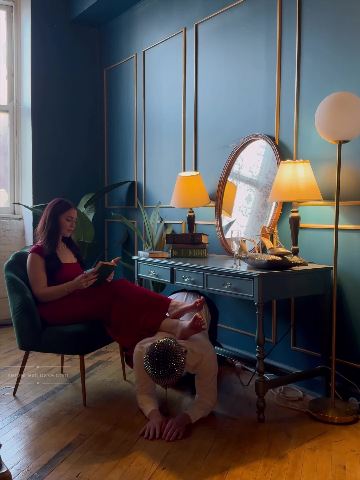 While I indulge in My afternoon reading, he stays perfectly still beneath Me…