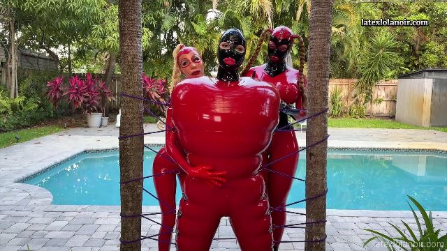 Latex Lara and me wanted to have Lola Noir bound in the inflatable suit between 2 palm trees.
