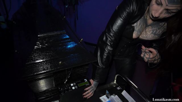 Mistress Lunatika put her slave in leather bodybag with a leather hood + restrained him to the coffin. Her slave have electro connected to his butt and cock. She will also close the coffin completely for a moment…. And will continue playing electric play with her voice while he is confined.