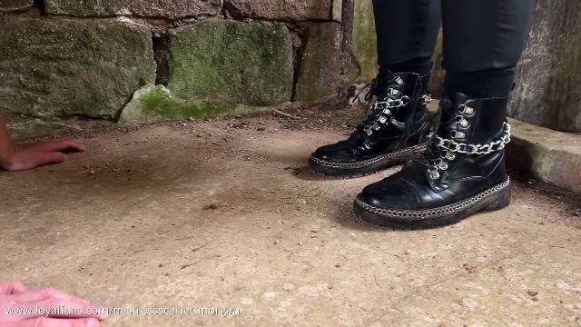 Mistress Scarlett Morgan wants to clean Her boots, so She drags Her slave into a dirty abandoned cottage to clean the filth from Her leather shoes and chunky rubber soles using only his mouth.