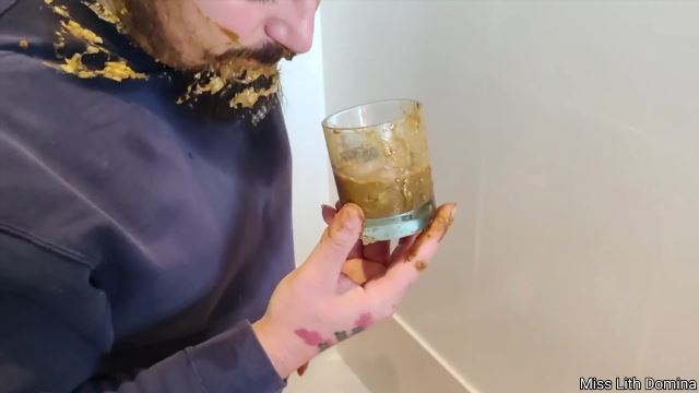 The climax of this depraved spectacle comes when Miss Lith, having emptied herself, collects the remnants of shit, vomit, and spit into a glass. She orders Manuel to sit and face the consequences of his servitude. With trembling hands, he raises the glass to his lips, swallowing the disgusting concoction, piece by piece.