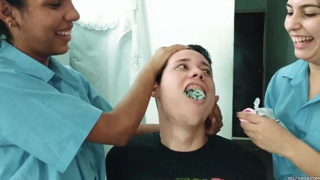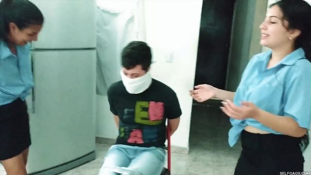Sexy Latina step-sisters Katherine and Maria are doing an art project with their study buddy, Dario. The main topic is ‘SILENCE’ and Dario and the girls are discussing what they can do to create something awesome for their project. This is where Katherine and Maria come up with an idea to gag Dario and take some photos of him for their collage. Dario actually likes the idea and accepts to be gagged, but after giving him a few light gags, Katherine and Maria quickly get carried away and grab their study buddy, ties him up against his will, and gags him effectively tight!