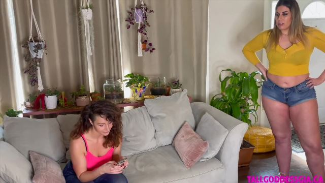 Gia walks in her boyfriends house to discover his side chick on the couch. Gia loses it and throws her to the ground pinning her down. The girls tossle on the ground and Gia punches her belly and sits on her face smothering her in her jean shorts ordering her to kiss her ass because this is Gia’s boyfriend. Side chick tries to escape but is too small and weak to move Gia and gets sat on and smothered. Gia then pulls down her pants and sits on her face bare ass, Gia teases her that her boyfriend would never date such a skinny bitch. Gia KO’s side chick and rolls her in a blanket and sits on the couch with her feet up and waits for her boyfriend to return home.