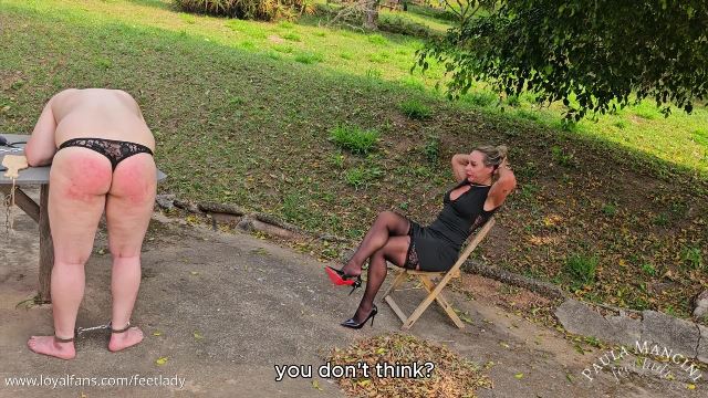 I seduced my stepson, and took him to a quiet place away from the city. So I was able to punish him by hitting his ass hard with my flip-flops and my accessories like floggers and paddles. After I’m satisfied with seeing his ass destroyed, I sit down and smoke a cigar to relax, I masturbate while he smells my sweaty stocking. Oh he have delicious view but is just it!